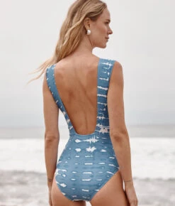The Long Torso Perfect Wrap One Piece – Mixed Gingham In Calypso & Deep Sea