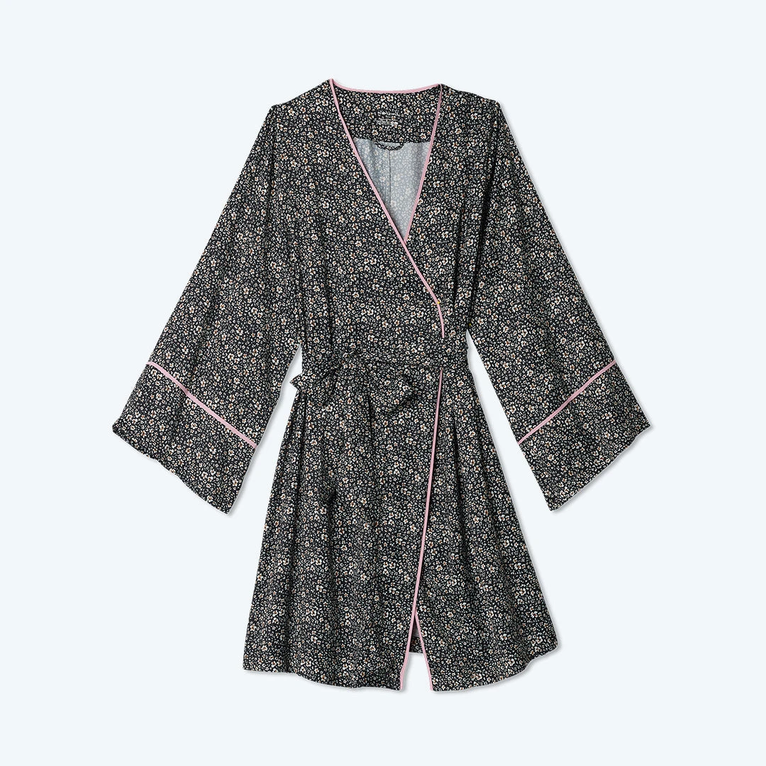 The best-selling Cloud 9 Silky PJs are now complete with a luxurious, matte charmeuse robe. Relaxed fit with a soft wrap front makes this robe extremely flattering. Complete with pockets and a hidden inside tie and self belt to keep things in place. Throw it over our Cloud 9 Silky PJ Set or Cloud 9 Silky Slip Dress!