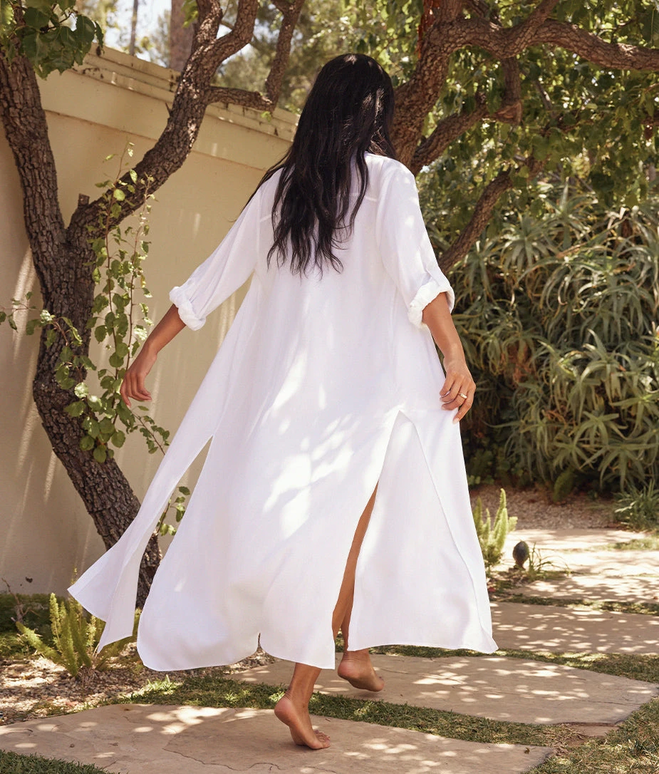 This timeless cover-up is a stunning & oh-so-breezy complement to your favorite suits — perfect for lunch on the beach or poolside cocktails. Roll-tab sleeves and a removable belt let you adjust the look based on the day’s adventures. Plus, this chic cover-up is crafted from luxe, lightweight voile fabric sourced from sustainable forests to help save water, maintain forest cover, & reduce CO2 emissions.
