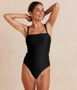 A deep vee front, a stunning open back, and flirty ruffles—this suit has it all. Our signature compression keeps you feeling secure (no tugging or adjusting), and the architectural details make a statement from every angle. Get out there and get ready to turn some heads.Â