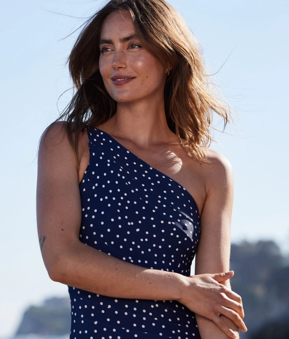 Slip into The Long Torso Sidestroke and start ticking off items on your bucket list. This swimsuit is built to move with you, but stays perfectly in place where you need it most, thanks to the unique design and construction that offers stability and compression. The one-shoulder strap makes this asymmetrical style a figure-flattering sure bet for all shapes and sizes.Â