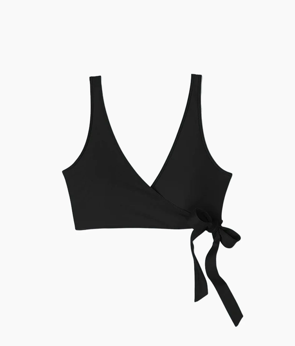 We heard you loud and clear — the two-piece take on our best-selling one-piece is officially here. Just as flattering as its sister suit, this bikini top flaunts a faux-wrap front with a functional tie. Wide straps and high back coverage add comfortable support whether you’re lounging, diving in, or chasing kiddos.