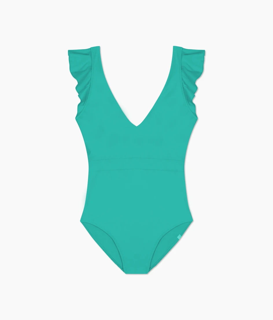 The Bow-Shoulder Ruched Sidestroke – Twilight Floral In Olive
